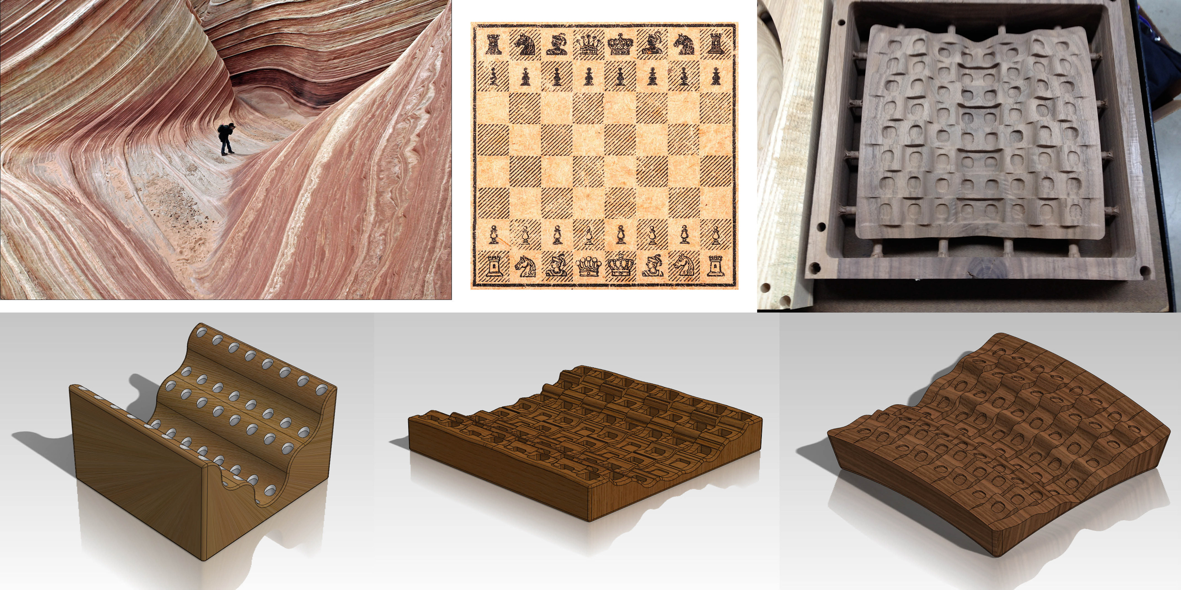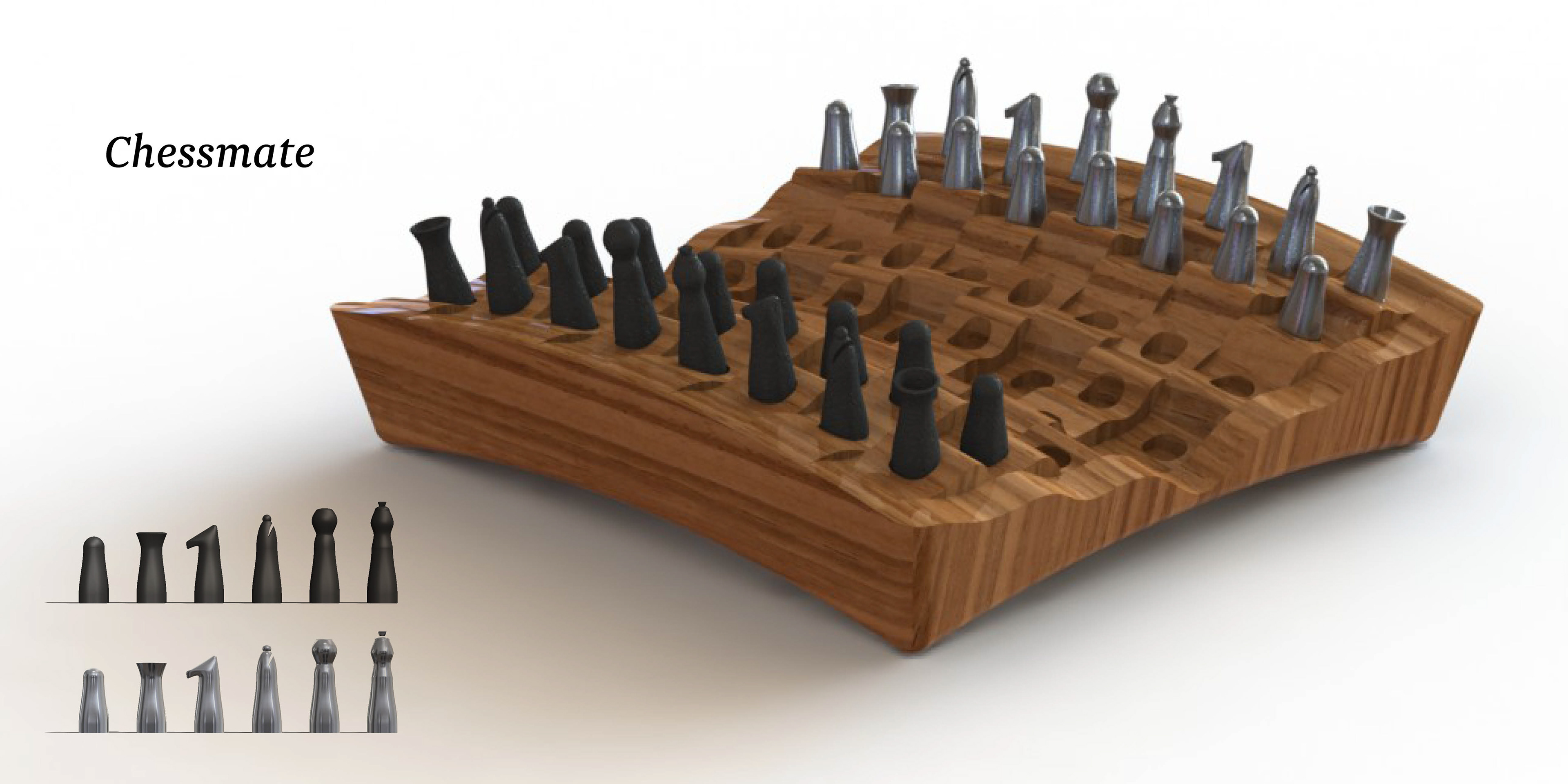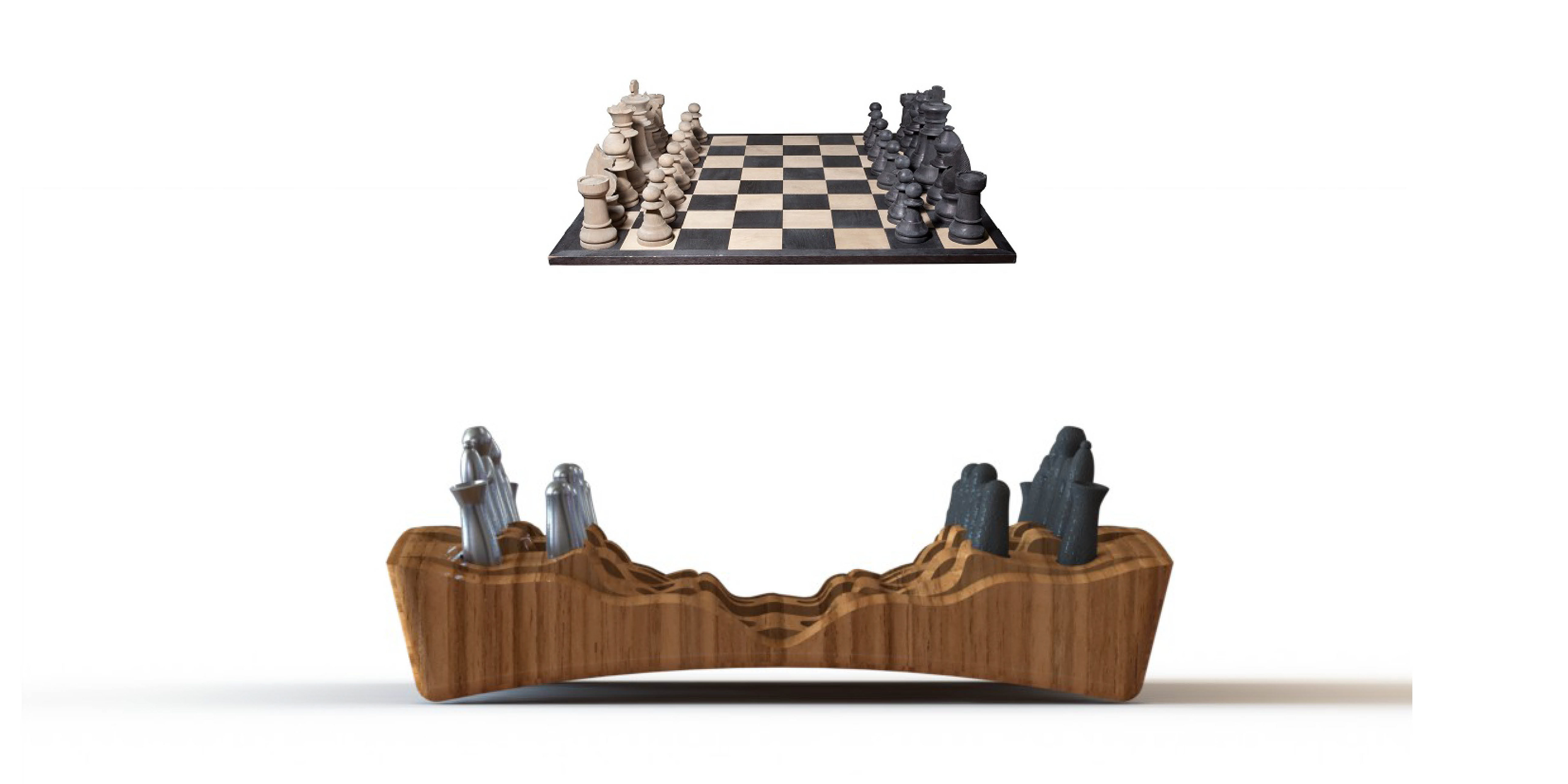 Chessmate is a topographical chessboard that re-envisions chess as a battle between two material forces.