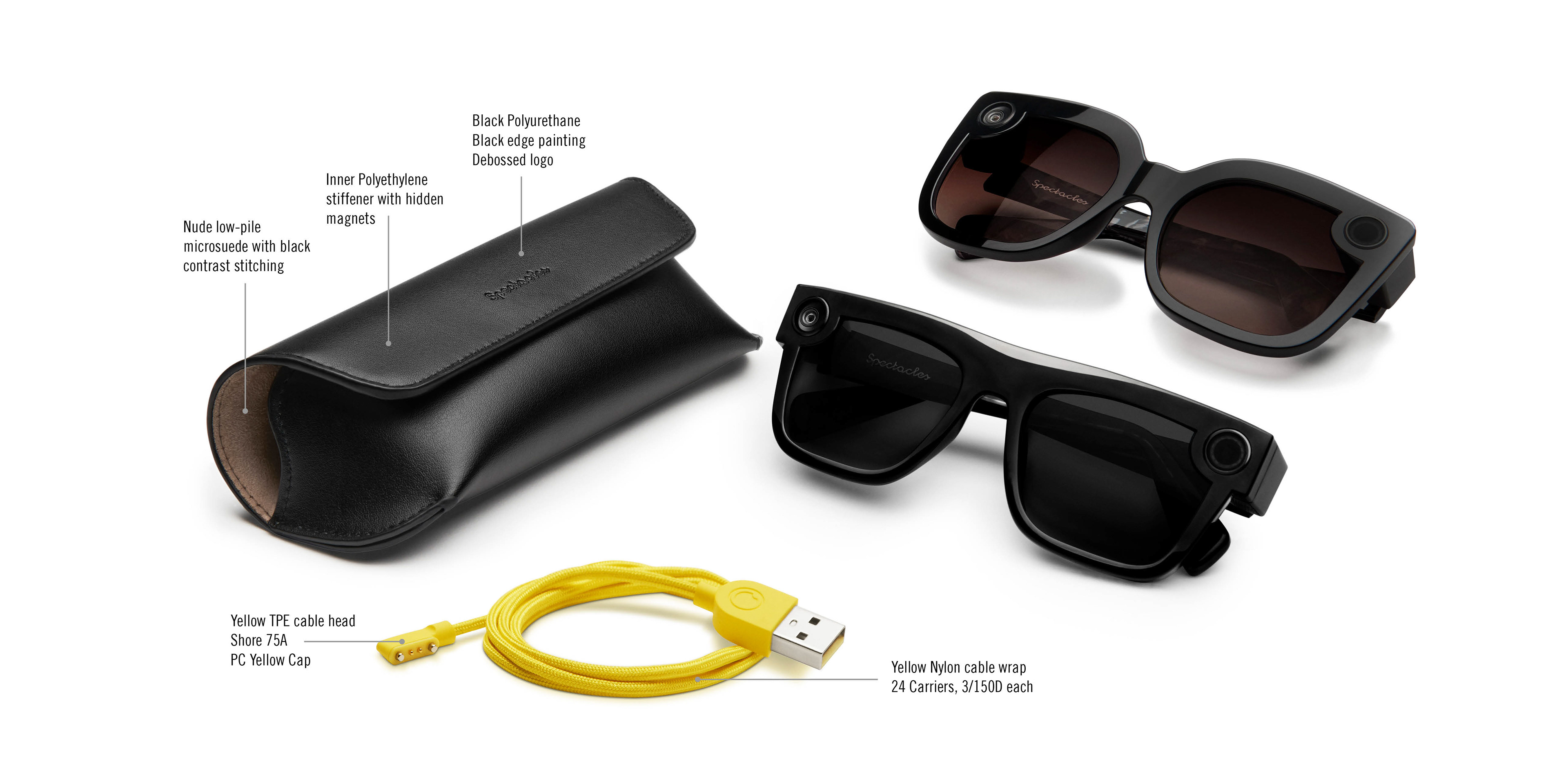Spectacles 2 (Nico & Veronica) was released in September 2018 as a follow-up to the April release of the Original style refresh. Both new styles were designed to cater to a larger audience that is both tech-savvy and fashionable. My role as CMF lead was to work closely with the ID lead, as well as the supply chain and factory teams to design and develop a robust yet still unique CMF palette that resonated with both current and future Spectacles customers.